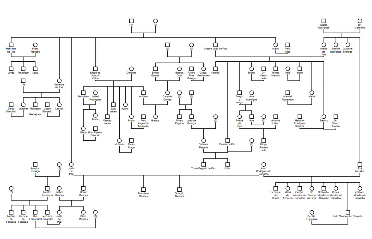 Thomas de La Peña | Fernão de La Peña | Diego Mendes de La Peña | Beatriz de la Peña e Luiz Dias de Camargo | Francisco de Camargo e Gabriela Ortiz ||